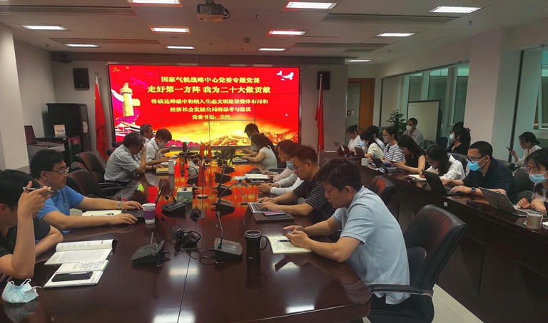 2022年7月11日,國家應(yīng)對氣候變化戰(zhàn)略研究和國際合作中心召開全體黨員大會,中心黨委書記、主任徐華清同志圍繞“走好第一方陣,我為二十大作貢獻(xiàn)”講授專題黨課,系統(tǒng)闡述了將碳達(dá)峰碳中和納入生態(tài)文明建設(shè)整體布局和經(jīng)濟(jì)社會發(fā)展全局的思考和建議。會議由中心副主任馬愛民主持,副主任蘇明山、總經(jīng)濟(jì)師張昕、全體黨員及青年理論學(xué)習(xí)小組組長參加。